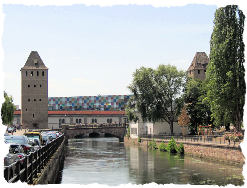 A l'extrême Sud de la Petite France, on trouvera les célèbres Ponts Couverts de Strasbourg datant du XIIIe siècle. Ils ont gardé leur nom malgré la disparition de leur toiture au XVIIIe siècle. Ils sont dominés par quatre tours du XIVe siècle, vestiges des anciens remparts, garants de l’indépendance de la république strasbourgeoise. Immédiatement après le rattachement de Strasbourg à la France en 1681, une nouvelle ceinture de fortifications fut construite par Vauban. Sur la rive située en face, on observera cette fois-ci l'architecture moderne et originale du Musée d'Art Moderne et Contemporain de Strasbourg.